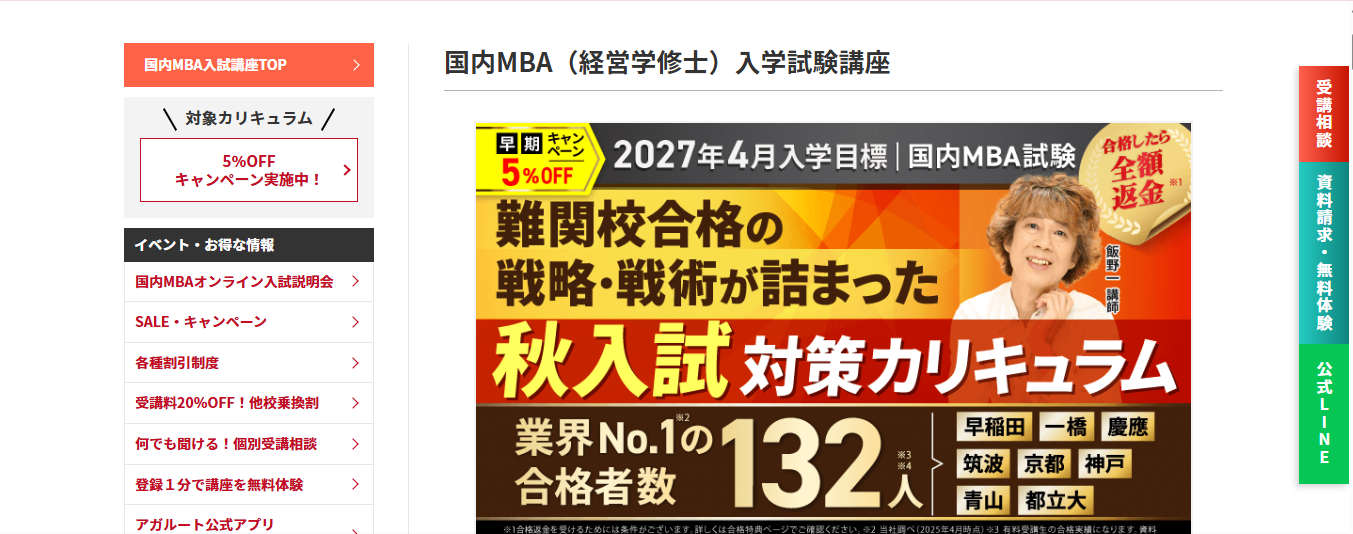 アガルートの国内MBA試験講座を