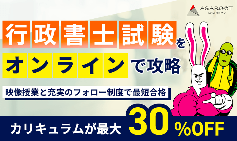 行政書士試験の合格を効率よく目指すなら、合格実績の豊富なアガルートの通信講座で、熟練の講師陣の指導を受けるのがおすすめです。