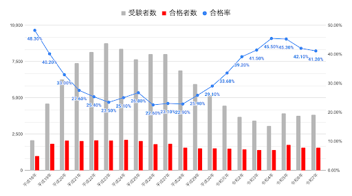しかしながら、合格率が上がっている理由は、受験者数の減少によって、相対的に合格者の割合が高くなっているという点にあります。